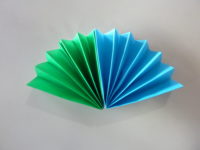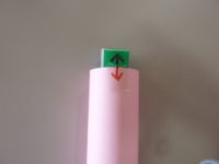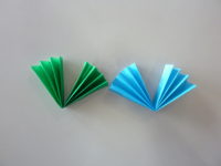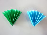 ⑥ 扇の両端をそれぞれトイレットペーパーの芯にセロハンテープでとめる