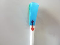 ⑤ 広告紙で作った棒に折り紙の中心をセロハンテープでとめる(両面)