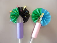 トイレットペーパーの芯、折り紙2枚、広告紙で作った棒1本、のり、セロハンテープ