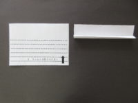 1.A4サイズのコピー用紙を半分に折り、はさみで切ったものを1枚用意する。
