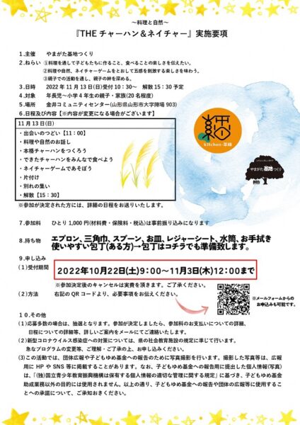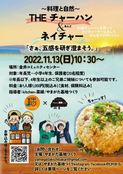 【やまがた基地つくりさんより】「〜料理と自然〜THEチャーハン&ネイチャー」のお知らせです☆