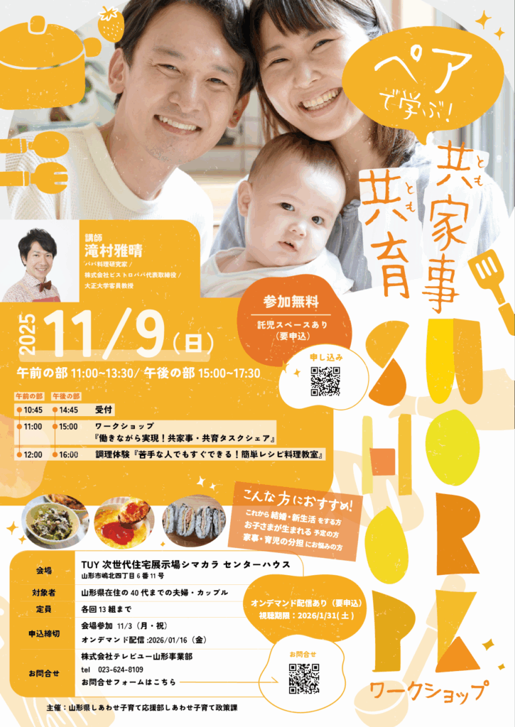 「ペアで学ぶ!共家事・共育ワークショップ」が開催されます!👏