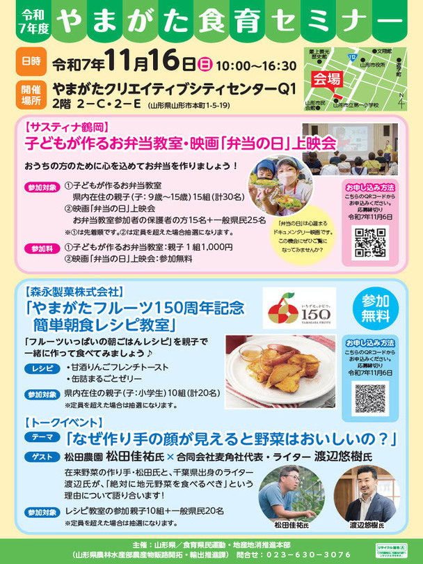 申 込 先:https://www.pref.yamagata.jp/140031/2025shokuikukenmintaikai.html