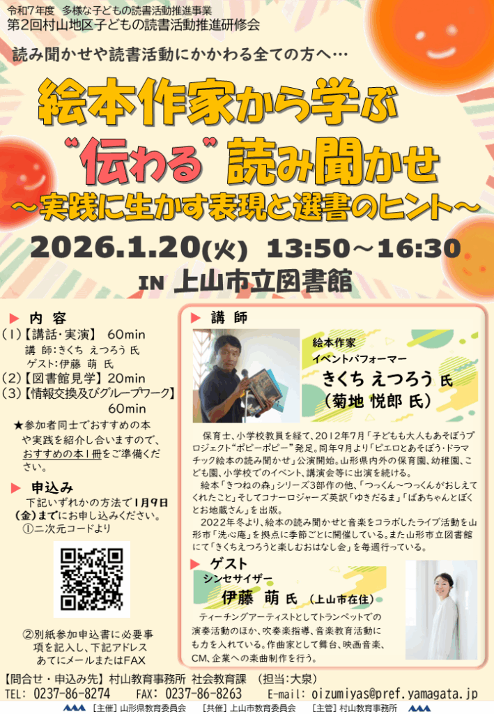 〇問合せ先 ☎(0237)86-8274 村山教育事務所 社会教育課(担当:大泉)