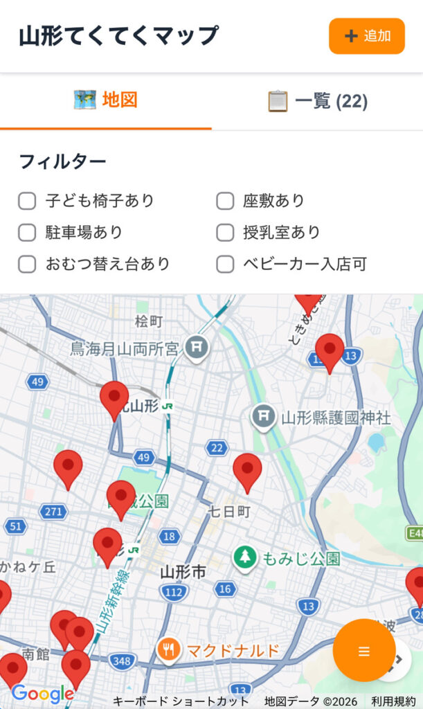 山形てくてくマップ | 授乳室・おむつ替え台・子ども椅子情報 (yamagata-tekuteku-map.jp)